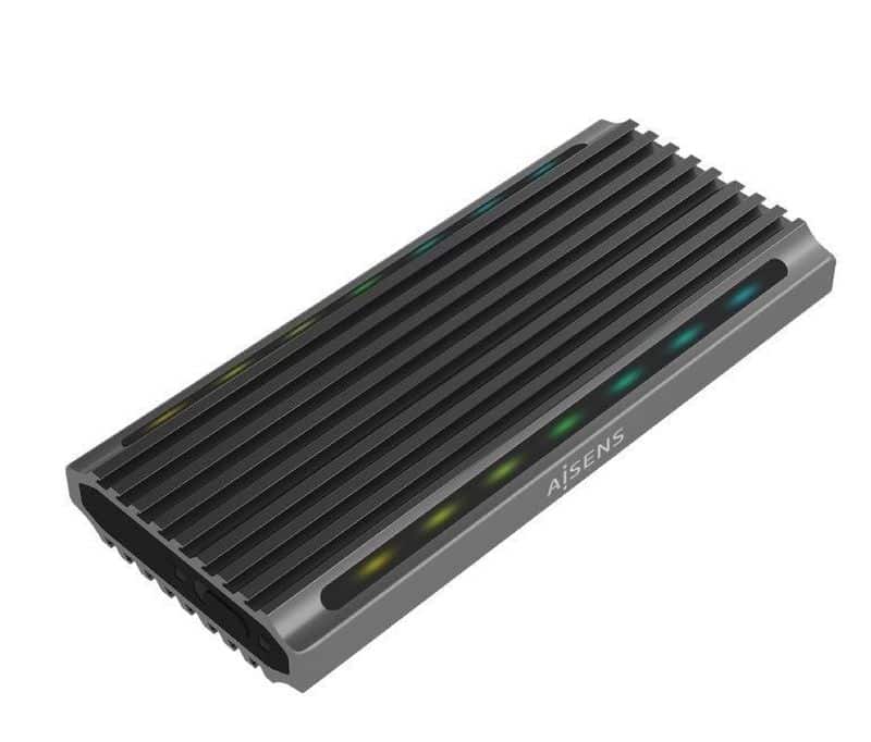 Destacamos el diseño muy gaming y LED RGB de esta caja. Esta caja es el amante perfecto de un jugador apasionado en gaming. Soporta discos duros SSD M.2 (NGFF) SATA o NVMe con las clavijas B+M o clavijas M.