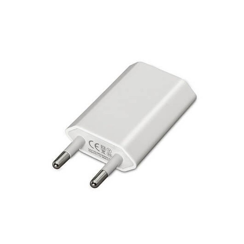 Mini cargador USB Voltaje de entrada: 240V 50-60Hz Voltaje de salida: DC 5V 1A. 5W(MAX) Color: Blanco Normativas: RoHS, CE Test de funcionamiento: 100% testado PESO 0.03 kg DIMENSIONES 12 16 0.5 cm