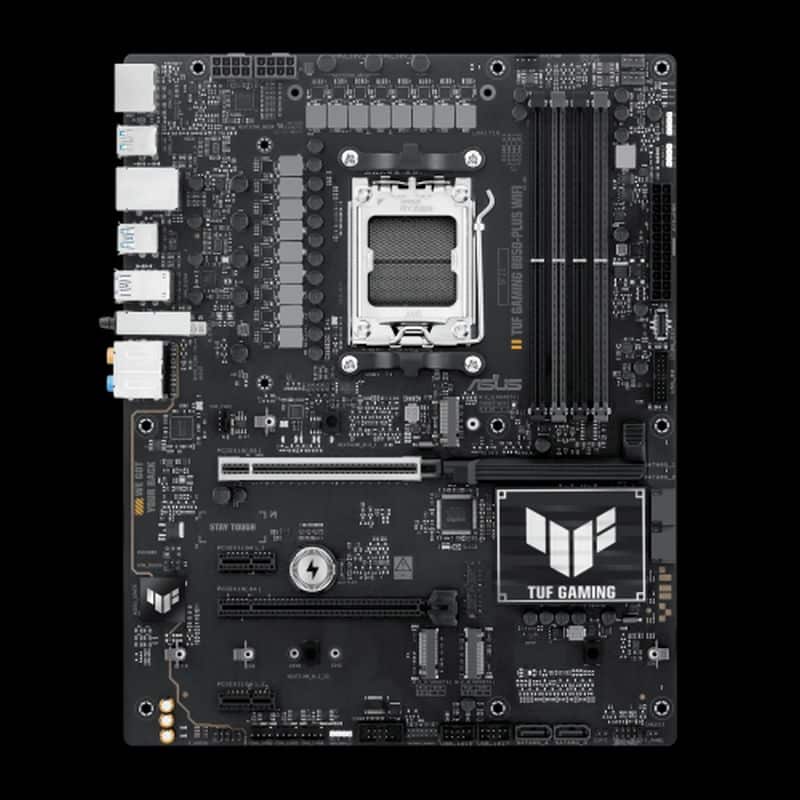 ASUS TUF GAMING B850-PLUS WIFI. Fabricante de procesador: AMD, Socket de procesador: Zócalo AM5, Procesador compatible: AMD Ryzen 7000 Series, AMD Ryzen 8000 Series, AMD Ryzen 9000 Series. tipos de memoria compatibles: DDR5-SDRAM, Memoria interna máxima: 192 GB, Tipo de ranuras de memoria: DIMM.