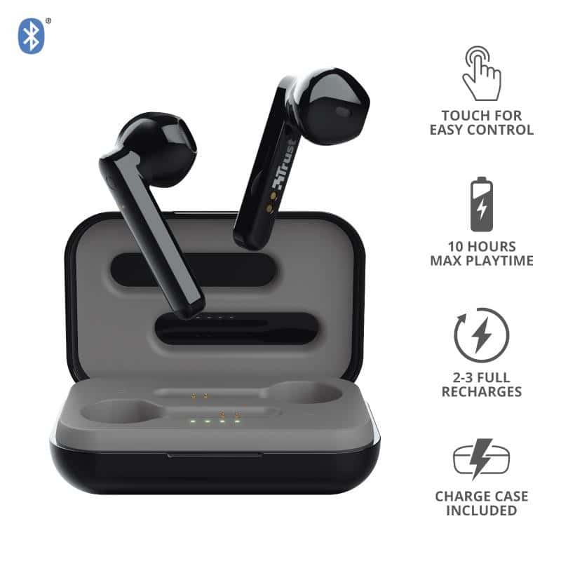 Los auriculares inalámbricos Primo Touch de Trust ofrecen libertad de movimiento con un alcance inalámbrico extralargo y funciones para cargarlos en cualquier lugar. Y, gracias a su diseño, no solo te moverás con libertad, sino también con estilo.