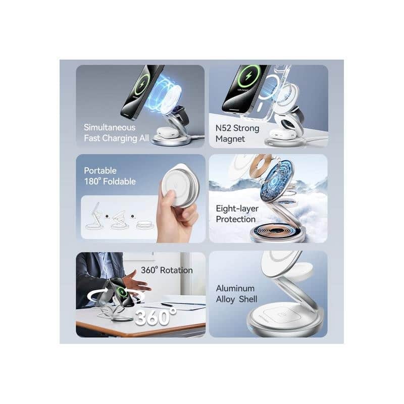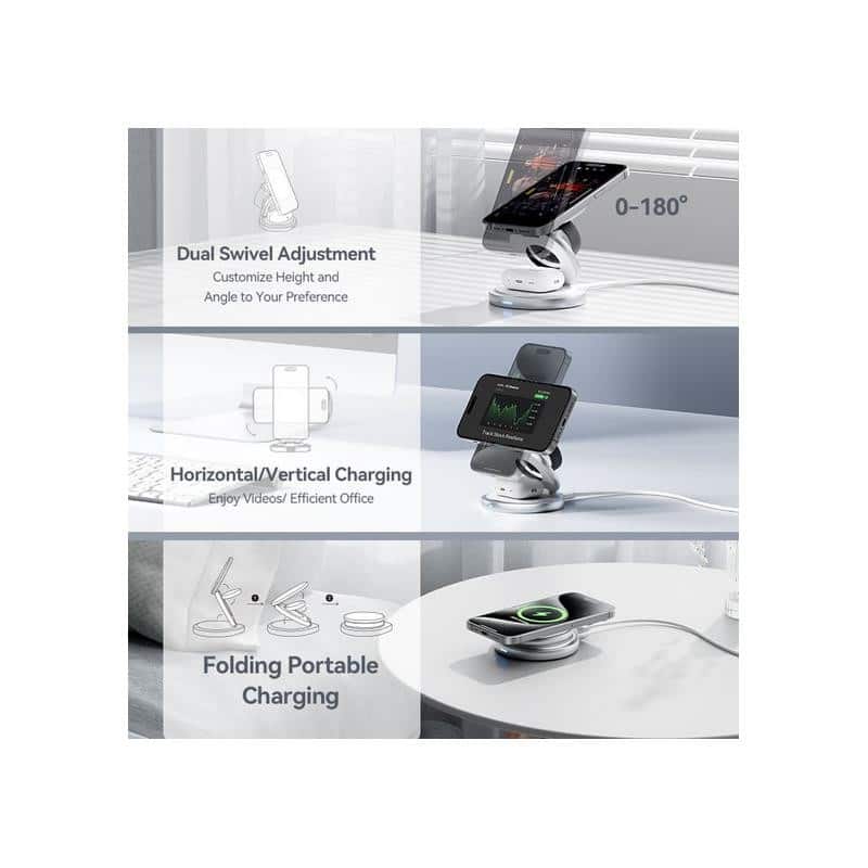 El Cargador Inalámbrico 3 en 1 con MagSafe Vention FGEI0 es una estación de carga versátil diseñada para usuarios de dispositivos Apple