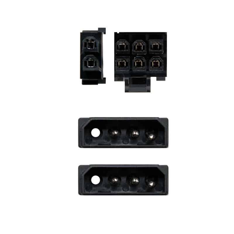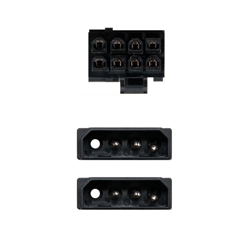 – Dos conector molex 4 pin macho en un extremo y un conector 6+2 pin macho en el otro.