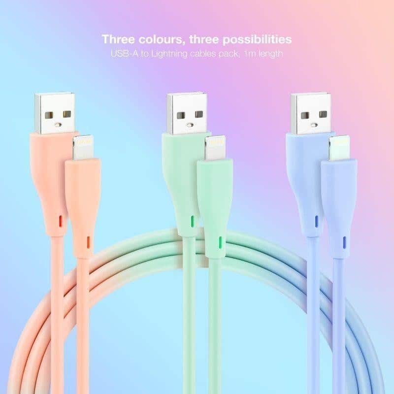 3 Cables Lightning a USB 2.0, Lightning/M-USB A/M, Mallados, Rosa, Azul y Verde, 1 m