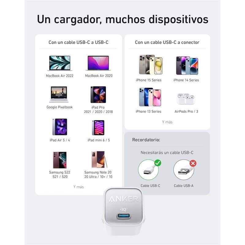 Necesario para Nano: mejorado con una potencia de salida de 30 W, para que puedas cargar tus auriculares, smartphones, tabletas e incluso tu MacBook Air con un cargador ligero como una pluma.