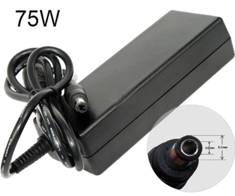 CARACTERÍSTICAS Entrada (): 100-240V Salida (): 15V 5A Conector (clavija): 6.3×3.0mm Potencia: 75W MODELOS COMPATIBLES: Satellite Toshiba Satellite: 220 225 440 460 470 480 490 1555 2100 2140 2180 2210 2590 2615 2655 2675 2715 2750DVD 2760DVD 4000 4010 4020 4030 4060 4080 4090 4100 4200 4300 series, 4330DVD … Toshiba Satellite 1400-1800 series: 1400, S1400-S151, 1400-S152, 1405-S151, 1405-S152, 1405-S171, 1405-S172 , 1410, 1410-S173, 1410-S174, 1415, 1415-S105, 1415-S106, 1415-S115, 1415-S173, 1415-S174, 1800-S252, 1805-S203, 1805-S204, 1805-S253, 1805-S274 … Toshiba Satellite 2400-2500-2800-5000 Series: 2400, 2400-S201, 2400-S202, 2405-S201, 2410-S204, 2410-S203, 2410-S204, 2500, 2500-2515, 2500CDS, 2500CDT, 2505CDS, 2505CDT, 2510, 2510CDS, 2515, 2515CDS, 2515CDT, 2515CTS, 2530, 2530CDS, 2535, 2535CDS, 2535CDT, 2540, 2540CDS, 2540CDT, 2545, 2545CDS, 2545CDT, 2545XCDT, 2590CDS, 2590CDT, 2590XDVD, 2595CDS, 2595CDT, 2595XDVD, 2610DVD, 2615DVD, 2655XDVD, 2675DVD; 2710XDVD, 2800, 2800-