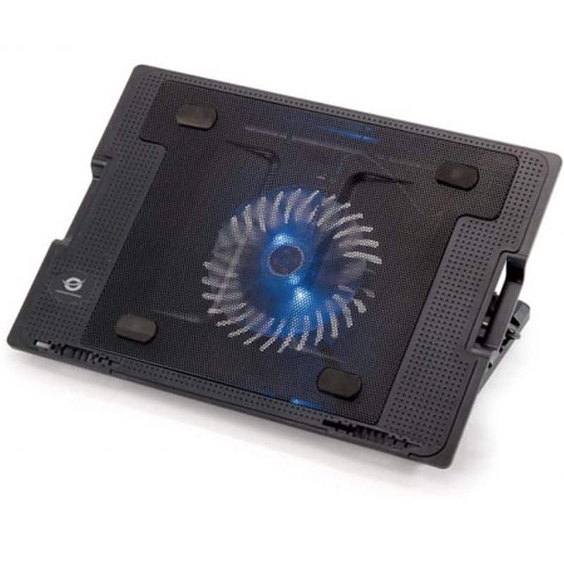 La base de refrigeración de Conceptronic cuenta con una superficie de malla metálica sofisticada con un potente y, al mismo tiempo, silencioso ventilador de 14 cm para evitar que los dispositivos se calienten en exceso. Una incorporación con estilo y muy útil para cualquier estación de trabajo móvil. Highlights Adecuada para equipos portátiles de hasta 17 1 ventilador ultrasilenciosos de 12.5cm integrados Ajuste de altura de 4 niveles Diseño antideslizante Puerto