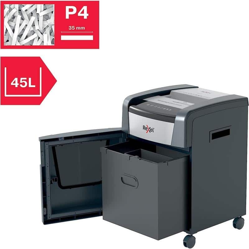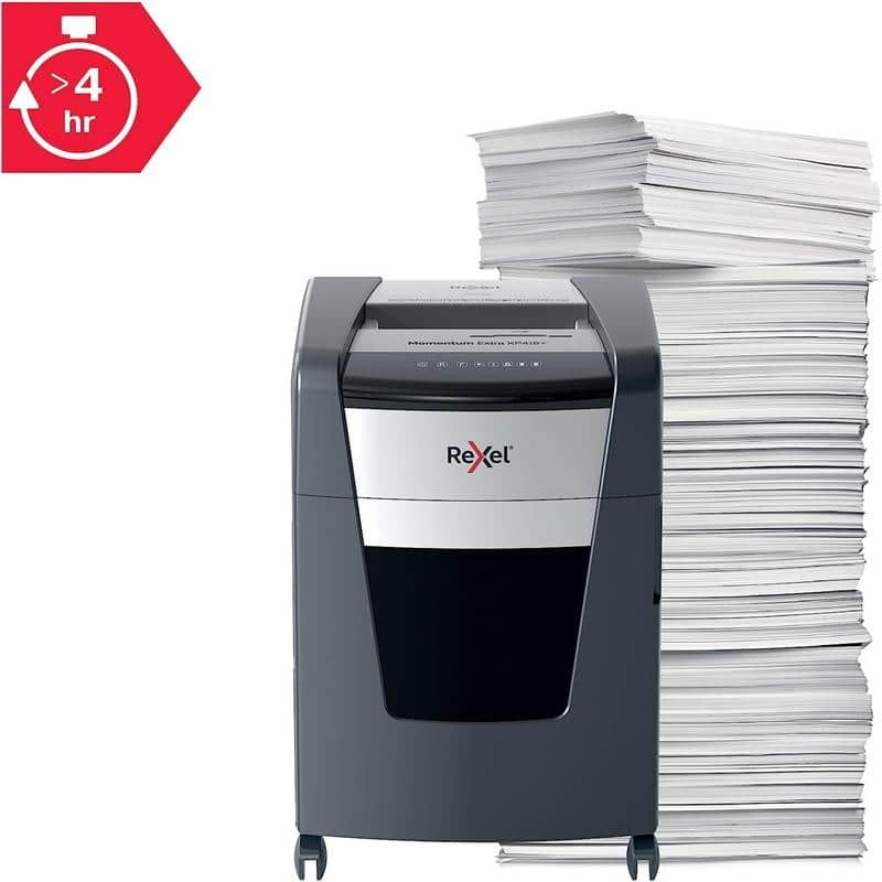 Las destructoras de papel sin atascos Rexel Momentum Extra son ideales para destruir documentos confidenciales en la oficina.
