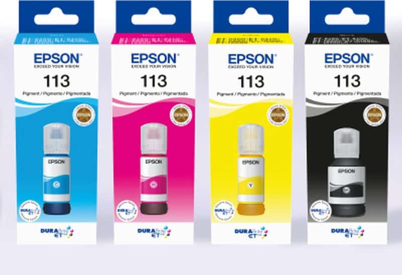 113 EcoTank 4-colour Multipack 113 EcoTank 4-colour Multipack Impresiones de aspecto profesional Disfruta de impresiones excelentes con textos claros y colores vivos con esta tinta de alta calidad y fiabilidad. La serie 113 utiliza tinta pigmentada para producir impresiones nítidas y resistentes a los borrones y a las marcas de rotuladores. Impresión de miles de páginas Es impresionante cuántas páginas puede producir un solo pack de recambio: hasta 7500 páginas en negro y 6000 en color1.