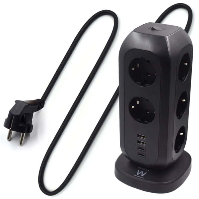 EWENT BASE MULTIPLE TIPO 11 SALIDAS 2 CARGADORES USB Y 2 CARGADORES USB-C, CON ENCHUFE SCHUKO DE 16