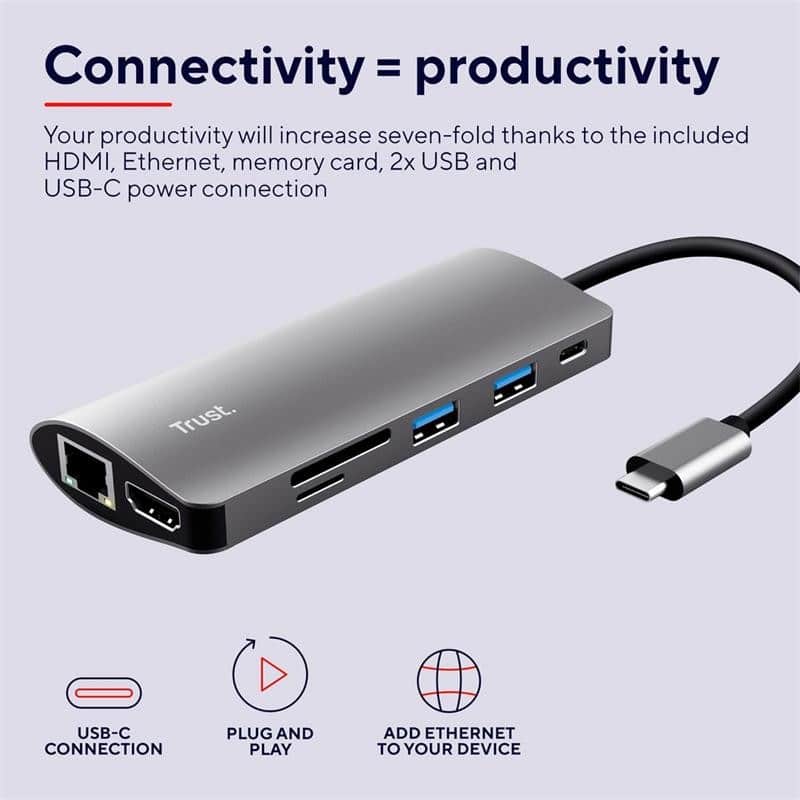 Trust Dalyx Adaptador multipuerto USB-C 7 en 1 – Plata