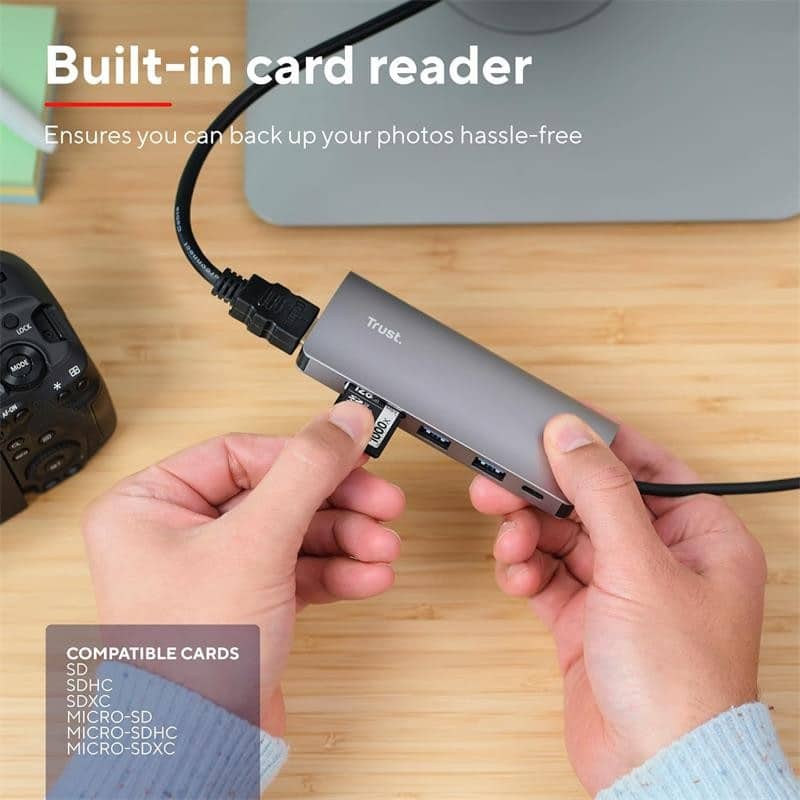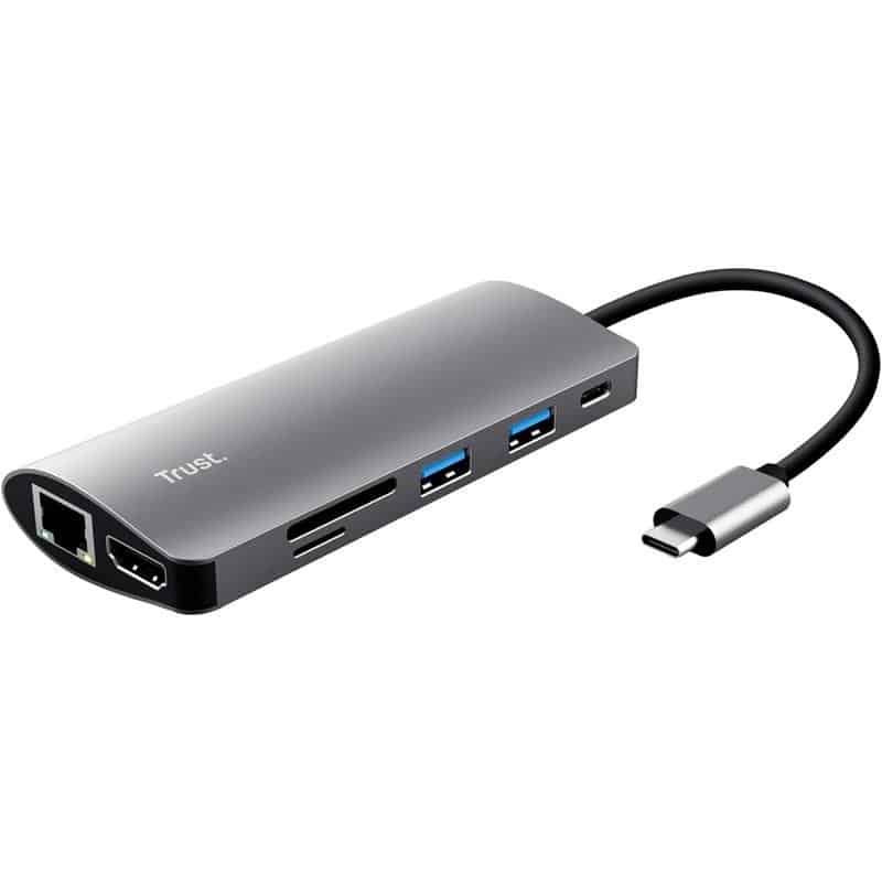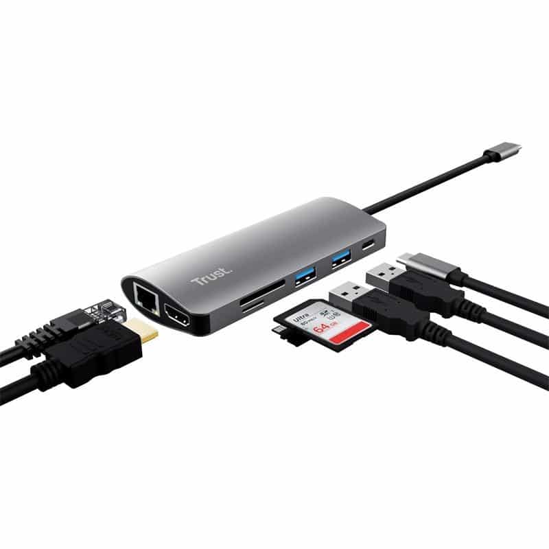 Adaptador Trust dalyx 7 en 1 multipuerto usb-c hdmi 2x usb-a network micro micro sd ethernet.