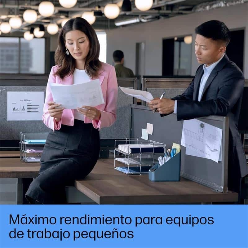 Para obtener más información, consulte http://www.hp.com/go/printerclaims . La velocidad exacta varía según la configuración del sistema. aplicación de software, controlador y complejidad del documento.) Velocidad de impresión a doble cara (A4): Hasta 34 ipm Primera página en blanco y negro (A4, listo): En Solo 6,3 Seg.