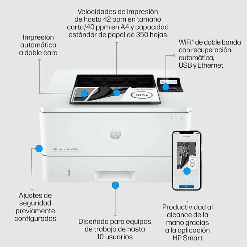 HP IMPRESORA MONOCROMO LASERJET PRO 4002DN DUPLEX/ BLANCA tóner W1490A / W1490X.