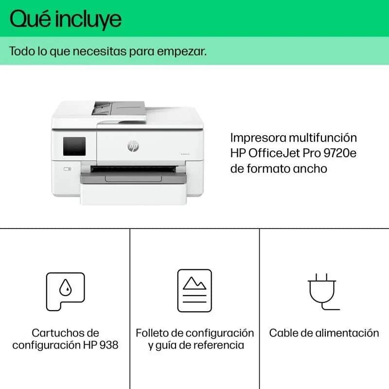 Imprime en formato ancho como un profesional con la impresora multifunción HP OfficeJet Pro 9720e .