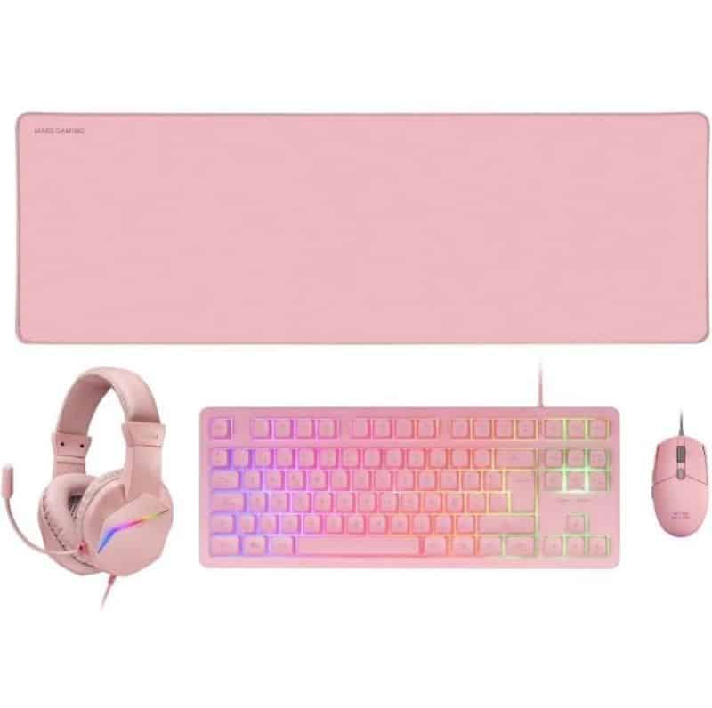 MARS GAMING TECLADO MCP-RGB3P + RATON OPTICO + ALFOMBRILLA XXL + AURICULARES ROSA