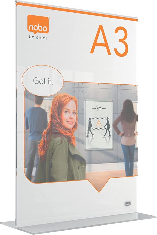 NOBO PANEL PUBLICITARIO ACRÍLICO CON SOPORTE A3. Tablón de anuncios acrílico transparente tamaño A3 de diseño moderno sin marco ideal para señalización o para mostrar anuncios y…