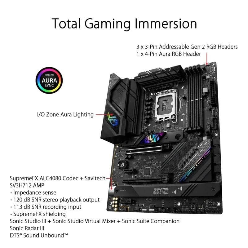 La placa base ASUS ROG STRIX B760-F GAMING WIFI está diseñada para alojar los procesadores híbridos Intel Core de 12 y 13 generación en el zócalo Intel LGA 1700.