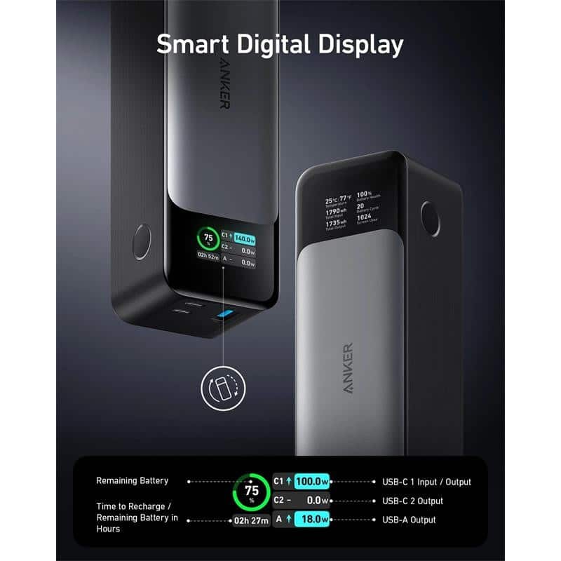 Monitoreo Inteligente de Carga: La pantalla digital integrada proporciona información de carga en tiempo real, permitiendo una gestión precisa de la energía y planificación de recargas sobre la marcha, convirtiendo esto en una opción inteligente para un banco de energía USB-C de alta capacidad Anker.