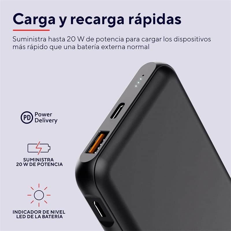 Dotada con una Delivery de 20 W, carga dispositivos más rápidamente que una batería externa normal y también se puede autocargar más rápidamente. No más esperas!