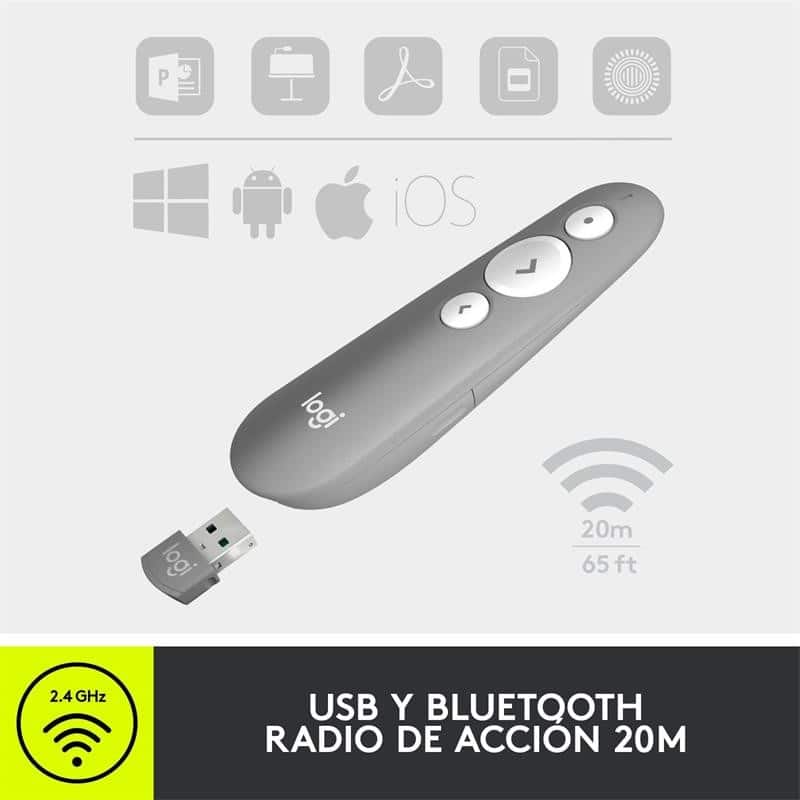 Requiere la instalación del software Logitech Presentation (sólo compatible con Windows 7 o posteriores / macOS X 10.12 o posteriores).