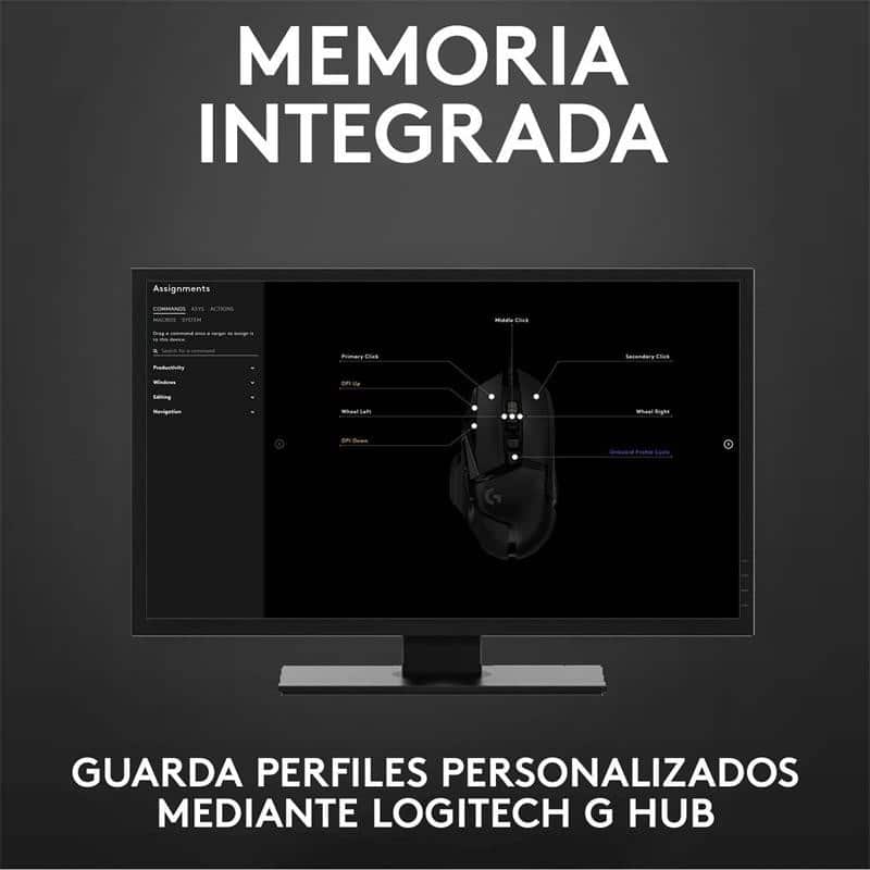 Asegúrate de personalizar y ajustar tu configuración de dpi con Logitech G HUB. CONTROLES MUY A MANO 11 BOTONES PROGRAMABLES Usa Logitech G HUB para programar 11 botones con tus mac