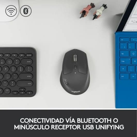 Conectividad Doble: conecta el ratón usando Bluetooth o el receptor Unifying de Logitech que te permite conectar hasta 6 periféricos Logitech compatibles con solo un receptor USB.