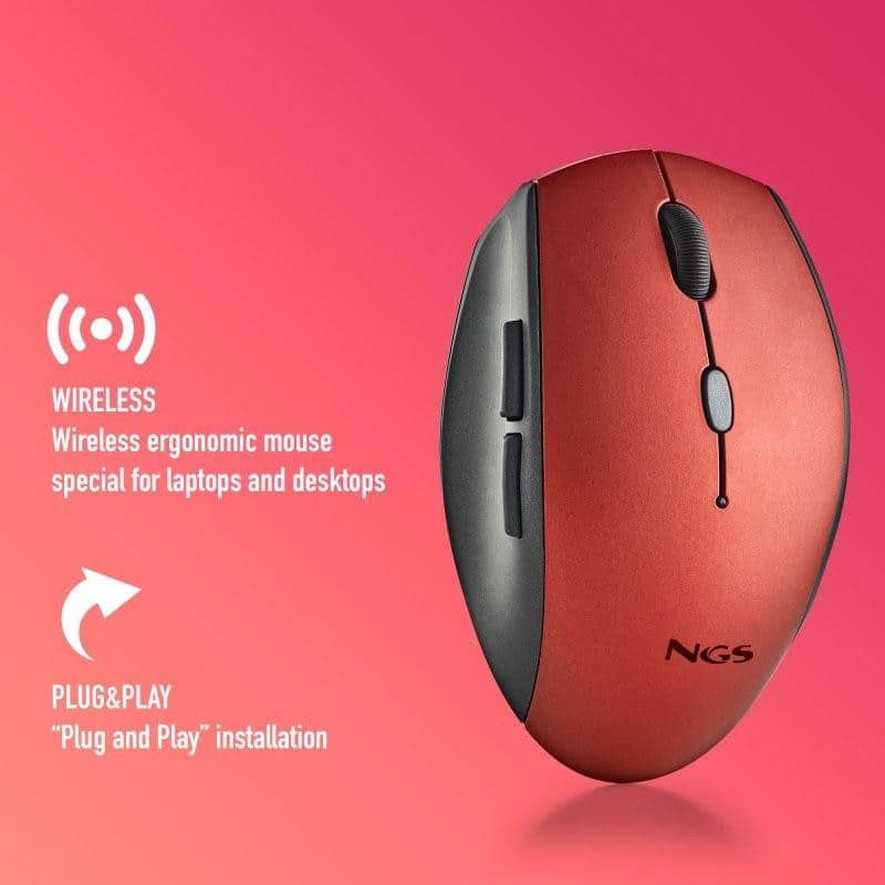 El NGS Bee rojo es un ratón inalámbrico ergonómico diseñado para proporcionar un uso cómodo y silencioso.