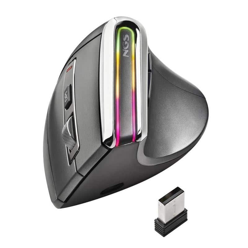 RATÓN RECARGABLE INALÁMBRICO VERTICAL CON LUCES LED Y CONEXIÓN MULTIMODO