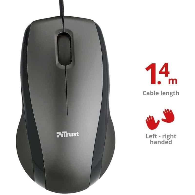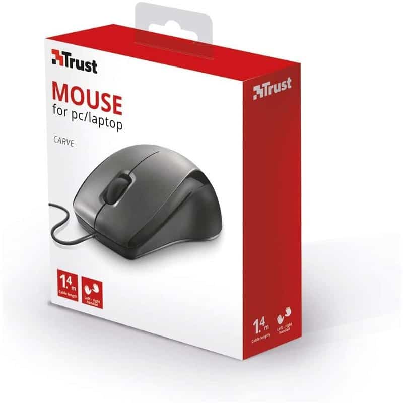 Ratón Trust Carve con un diseño fiable de 3 botones y rueda de desplazamiento, sensor óptico para mayor rapidez de respuesta y alta precisión (1200 DPI).