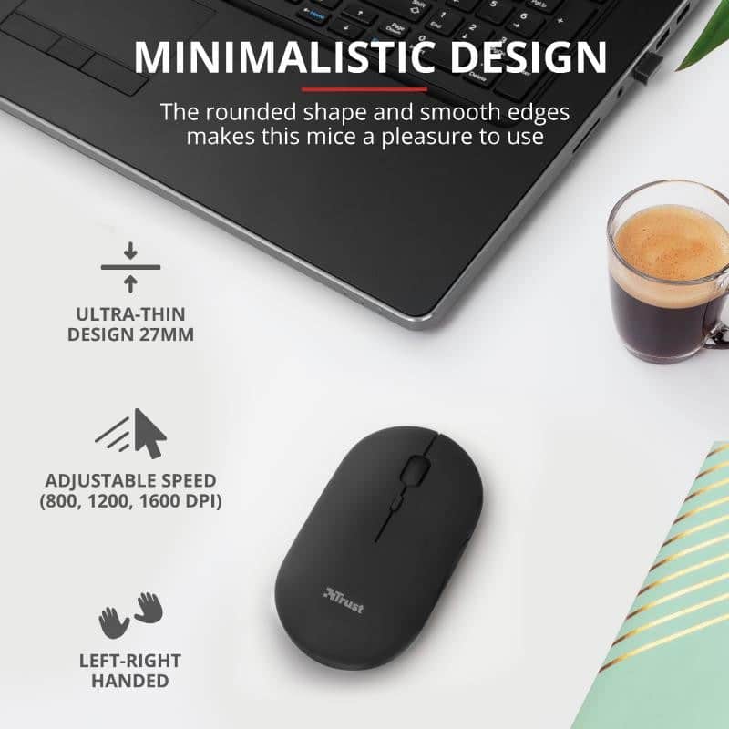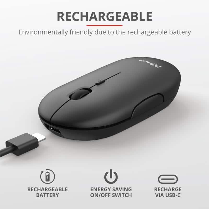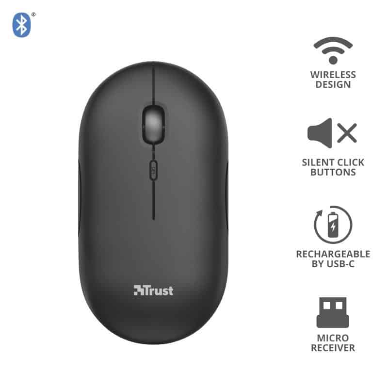 El ratón Puck de Trust está diseñado para ser la solución ideal ante cualquier exigencia del trabajo fuera de casa. Este ratón inalámbrico ultrafino es lo bastante pequeño para llevarlo encima sin por ello sacrificar la facilidad de uso. Está equipado con todas las funciones que necesita, como doble conectividad inalámbrica, botones silenciosos y batería recargable.