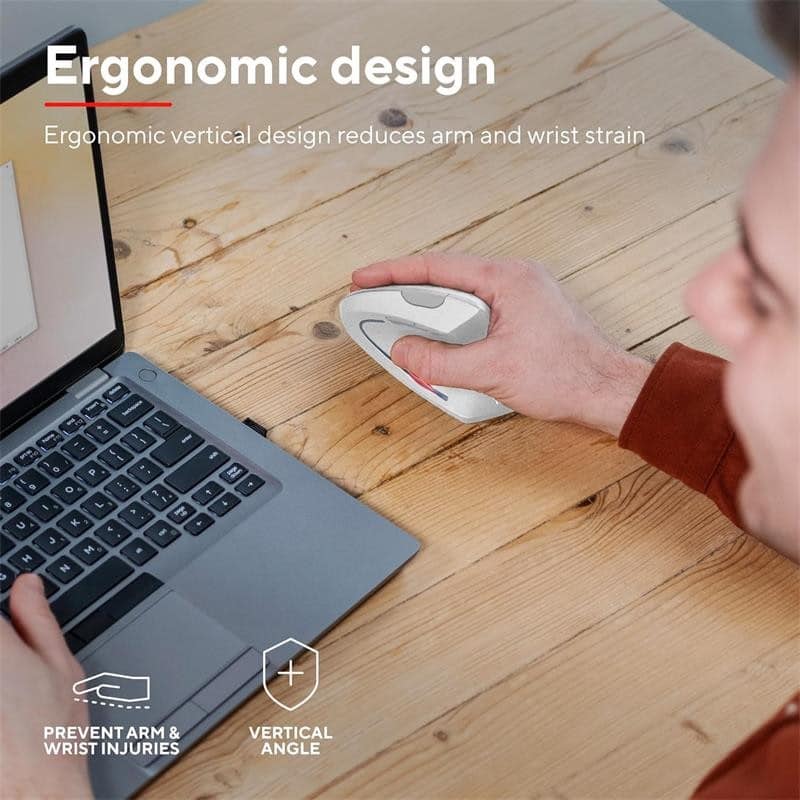 Totalmente natural: La forma ergonómica del ratón inalámbrico Verto coloca el brazo y la muñeca en una posición natural de 60 grados, por lo que se reduce la tensión del brazo y la muñeca . Esto significa que podrá trabajar con mayor comodidad y aumentar la productividad.