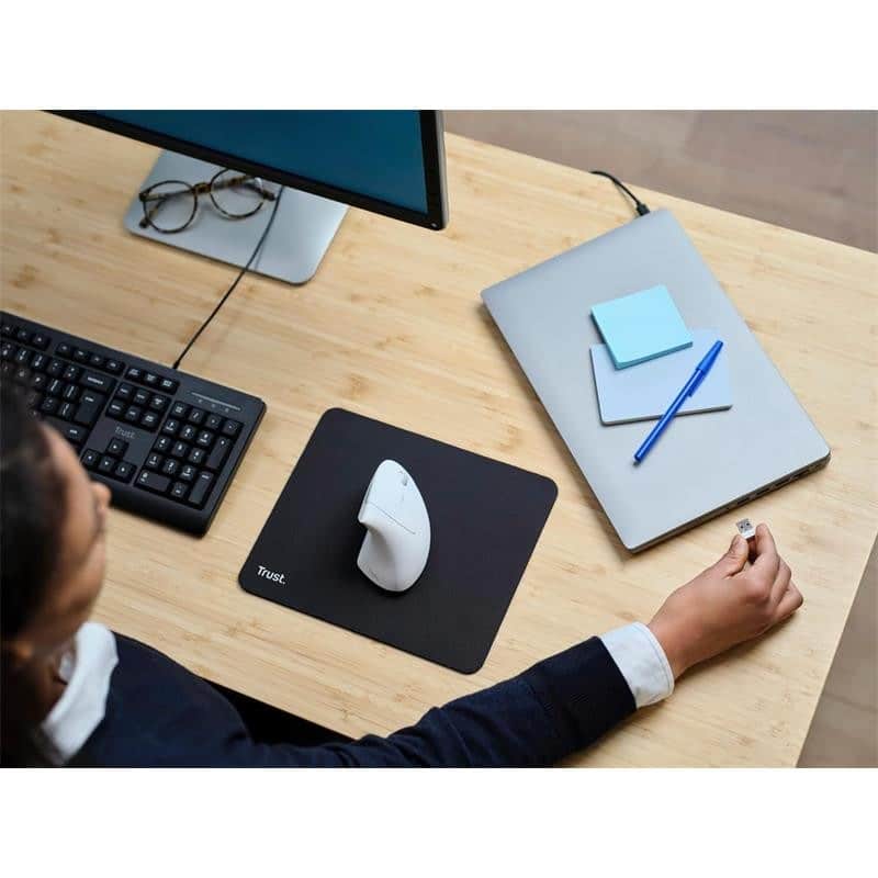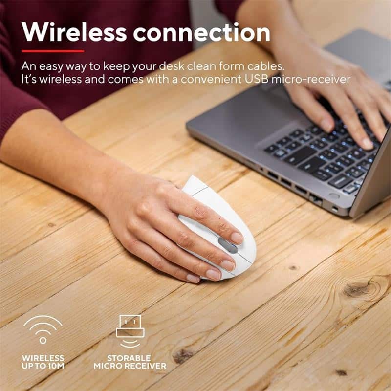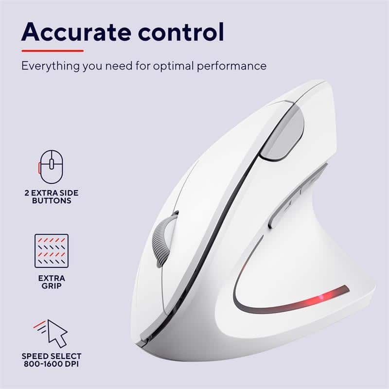 Trust Verto ratón inalámbrico con diseño vertical ergonómico para reducir la tensión en muñecas y brazos.