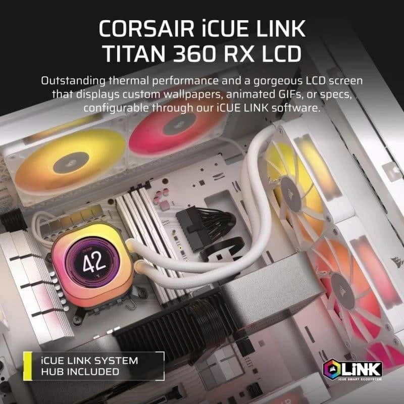 El Refrigerador de CPU CORSAIR iCUE LINK TITAN RX LCD ofrece una refrigeración de alto rendimiento y bajo ruido con conectividad iCUE LINK perfecta, mientras muestra tu…