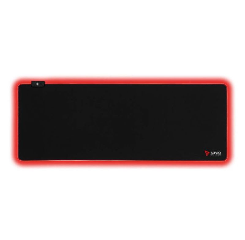 Alfombrilla de ratón profesional para juegos con bordes cosidos Modelo: SAVIO LED Edition Turbo Dynamic 900 x 400 x 3 mm ESPECIFICACIONES: Dimensiones: 900 x 400 x 3 mm Talla: XL Retroiluminación en los bordes de la alfombrilla con 11 modos de uso. Base de goma antideslizante que evita que la alfombrilla se deslice durante el uso. Material de alta calidad que proporciona precisión y un movimiento suave del ratón.