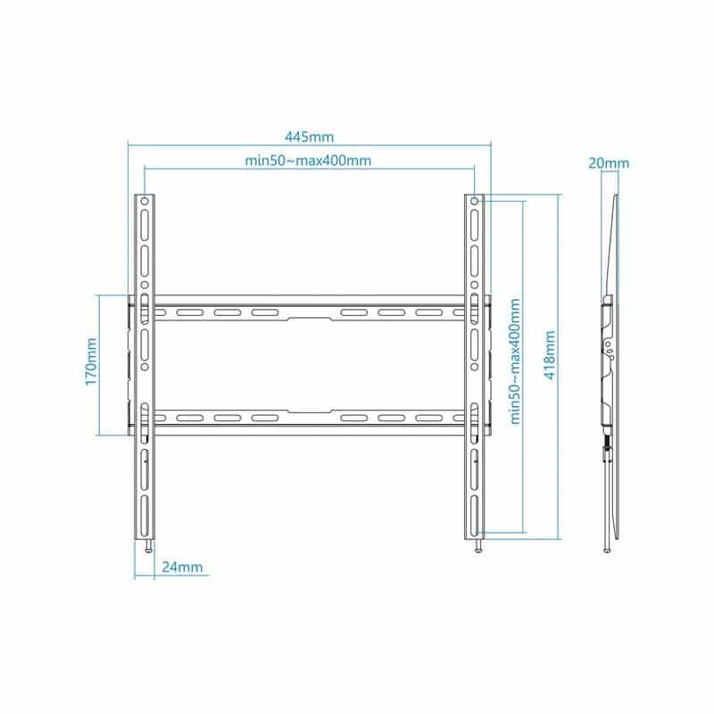 Compatible con VESA: 75×75, 100×100, 100×150, 100×200, 150×100, 150×150, 200×100, 200×200, 200×300, 300×200, 200×400, 300×400, 300×300, 400×200,…