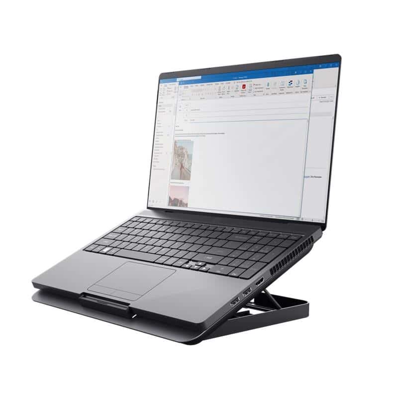 Frescor ecológico La base de refrigeración Exto para portátiles es respetuosa con el medio ambiente, ya que está fabricada con materiales reciclados. El tamaño no importa Apta para cualquier ordenador portátil de hasta 16 pulgadas, la Exto está preparada para refrescar su portátil. Su mejor ventilador Saque el máximo partido a su ordenador portátil con la velocidad regulable del ventilador, que le permitirá obtener el máximo rendimiento en condiciones de temperatura elevada.