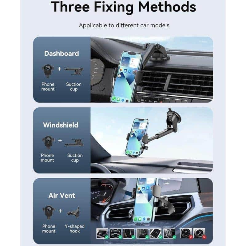 Conduce sin preocupaciones con el soporte para teléfono VENTION. La ventosa súper fuerte y las almohadillas de gel pegajosas mantienen tu teléfono seguro y estable en el parabrisas o en el tablero de tu automóvil. Ahora puedes navegar sin distracciones.