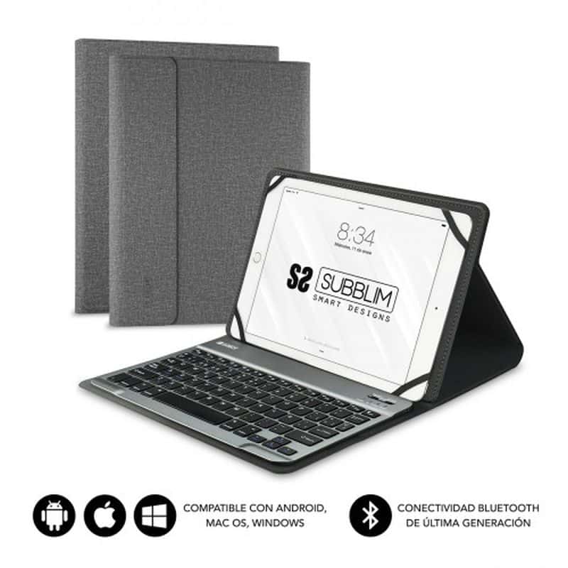 SUBBLIM FUNDA CON TECLADO KEYTAB PRO BLUETOOTH 10,1 10,8 GRIS