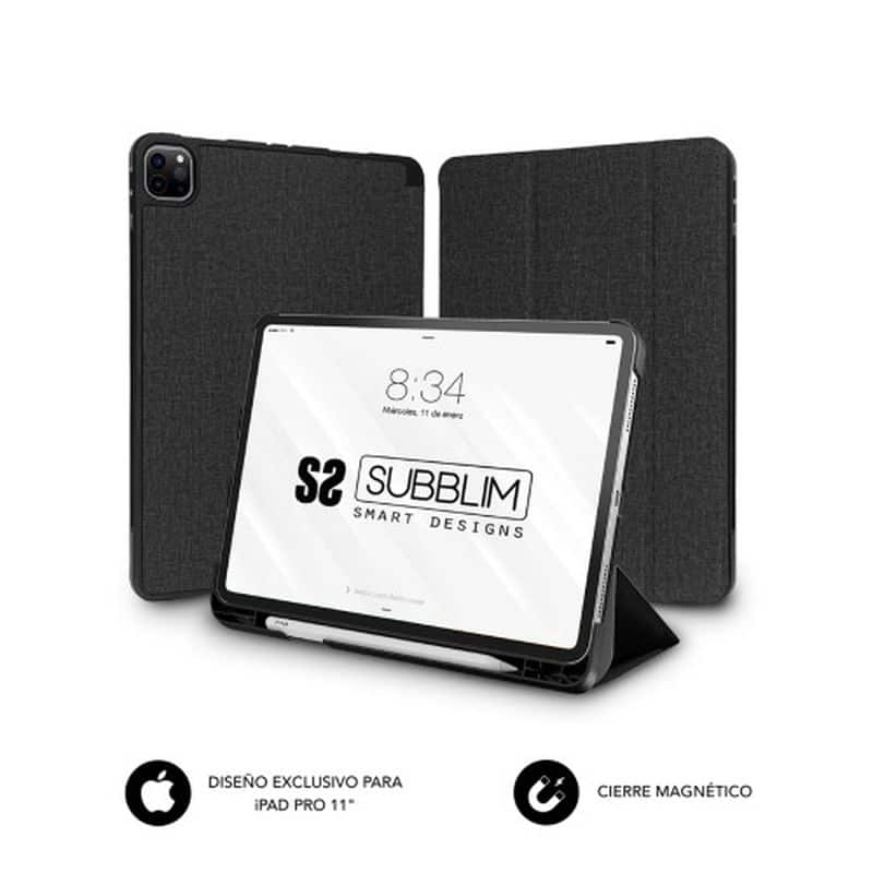 Descripción Exclusiva funda para el iPad Pro 11 2021/2020 que proporcionará un total protección a tu dispositivo en todo momento. Tiene un diseño moderno y elegante en formato Full SmartCover. La carcasa posterior está hecha de material de termoplástico que disipa el calor del iPad además de ofrecer una especial protección para que no tenga que preocuparse por ningún daño y añade unos bordes reforzados contra las caídas.