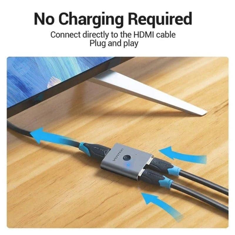 Conmutador HDMI bidireccional Vention AFUH0 con soporte para 4K a 60Hz, fácil conmutación entre dispositivos y diseño robusto, ideal para gestionar múltiples fuentes de video.