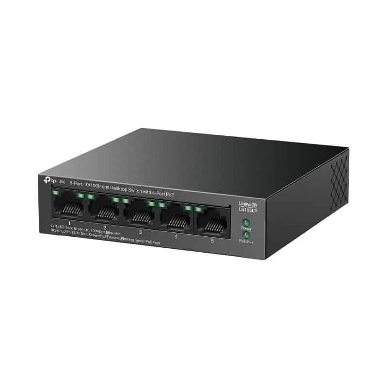 Conectividad inteligente con soporte PoE El TP-Link LiteWave LS105LP es un switch de escritorio diseñado para facilitar la conectividad de rojo y la alimentación eléctrica de dispositivos mediante la tecnología over Ethernet (PoE) . Con 5 puertos Fast Ethernet (10/100 Mbps) , este switch permite conectar dispositivos como cámaras IP, teléfonos VoIP y puntos de acceso con un solo cable Ethernet, reduciendo la complejidad del cableado y optimizando el espacio.