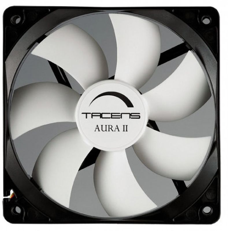 Especificaciones El ventilador Aura II esta diseñado para los amantes del silencio. Fabricado con el sistema de rodamientos de alta tecnología Tacens Fluxus II, permite el máximo rendimiento incluso en condiciones extremas. Dispone además de un sistema anti-polvo, que alarga la vida útil del producto y ofrece una alta resistencia.