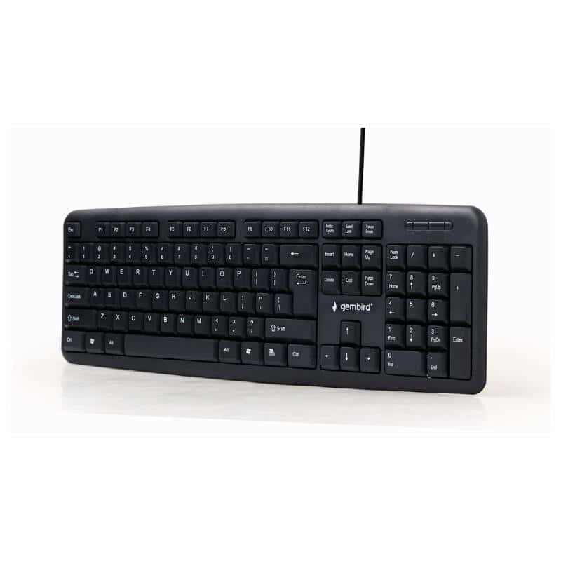 PRECISIÓN A TUS DEDOS Escritura silenciosa y cómoda Compatible con Windows 10 Teclado estándar de 104 teclas de tamaño completo Especificaciones De color negro Dimensiones 445 x 140 x 24 mm Peso: 424 g Longitud del cable: 1,5 m / 1,8 m Requisitos del sistema Windows XP / Vista / Windows7 / 8/10 Puerto USB https://gembird.com/item.aspx?id=9284