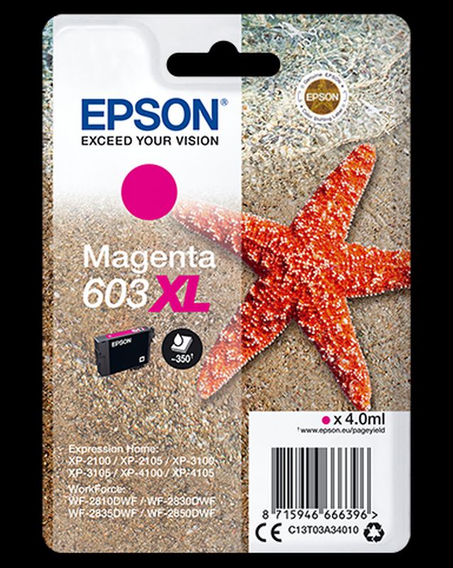 EPSON CARTUCHO TINTA T03A3 MAGENTA N 603XL. EXPRESSION HOME: – XP-2100 – XP-2105 – XP-3100 – XP-3105 – XP-4100 – XP-4105 WORKFORCE – WF-2850DWF – WF-2835DWF – WF-2830DWF -…