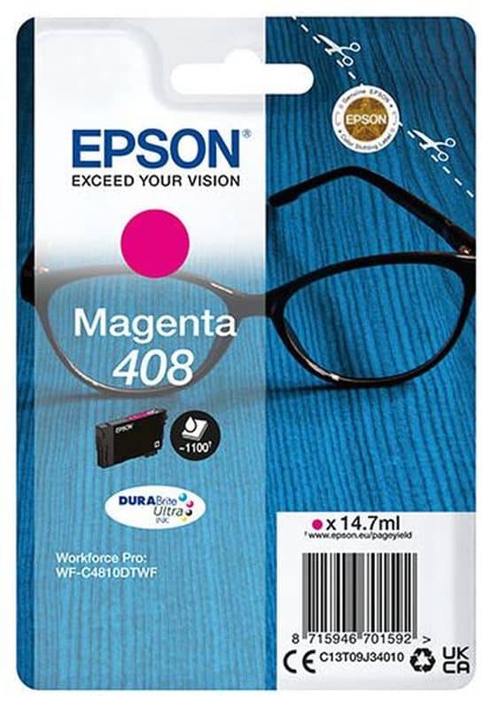 EPSON CARTUCHO TINTA T09J3 N 408 MAGENTA. C13T09J34010 de color magenta con una capacidad de 1.