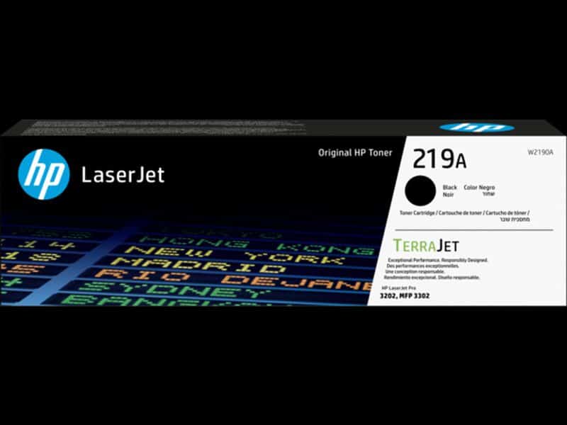 HP tóner W2190A NEGRO N 219A. 52 kg Peso del embalaje 0 Cumple los criterios de emisión del ecoetiquetado.[9] Colores más realistas Colores más realistas y detalles más definidos.