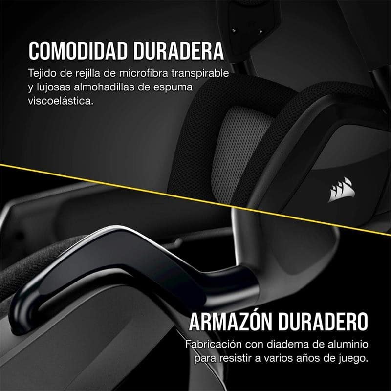 Sumérjase en la acción con los CORSAIR VOID RGB ELITE USB , equipados con transductores de audio de neodimio de 50 mm de ajuste personalizado que ofrecen un sonido envolvente 7.1 en PC. Tela con rejilla de microfibra y las almohadillas de espuma con memoria ofrecen una comodidad duradera. Un micrófono omnidireccional con indicador LED de silencio garantiza que los demás jugadores le oirán con una claridad de voz excepcional.