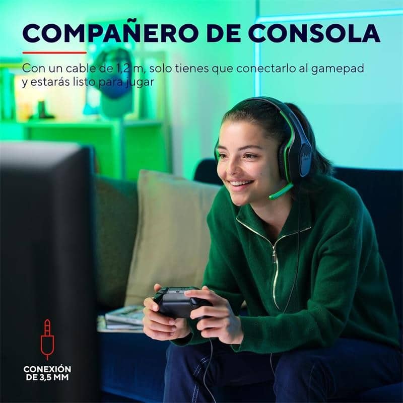 Solo hay que conectar el juego de auriculares en el controlador de juegos para usarlos en la consola (cable de 1,2 m)