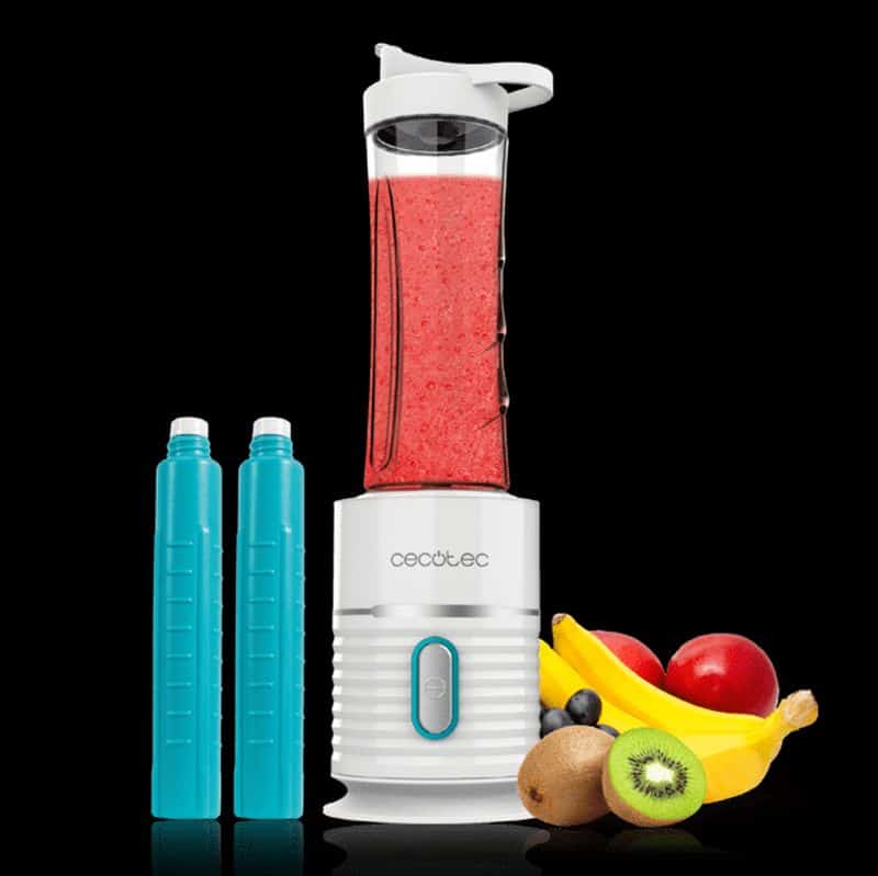 Batidora compacta de 500 W de potencia, capaz de triturar todo tipo de alimentos y apta para hacer zumos y smoothies. Cuchilla de 4 hojas con recubrimiento de titanio negro que permite mantener el acero afilado durante más tiempo, concebidas para poder picar hielo y conseguir que los batidos queden con una textura perfecta. Incluye 2 tubos refrigeradores para mantener la bebida fría durante más tiempo.