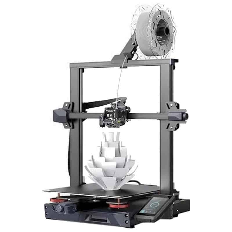 Creality Ender 3 S1 Plus, más espacio de construcción y una extrusora Dual-Gear Gran volumen de impresión – Extrusor Sprite Direct Drive Dual Gear – Nivelación automática – Placa base silenciosa de 32 bits – Doble eje Z – Pantalla de 4.3 pulgadas LCD – Distintos filamentos – Plataforma con PC La Creality Ender 3 S1 Plus es una versión superior de la Creality Ender 3 S1 en cuanto a su gran volumen de impresión. Ahora su espacio es de 300 x 300 x 300 mm, que distribuye mejor el espacio para poder crear figuras más voluminosas. Y cuenta con una cama caliente que alcanza hasta 100 C.